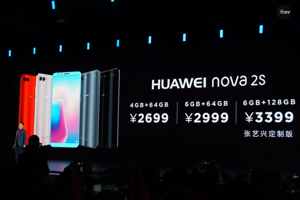 价格方面,华为 nova 2S 分为三种配置可选: 4GB+64GB 版本售价 2699 元; 6GB+64GB 版本售价 2999 元;6GB+128GB 的张艺兴定制版售价 3399 元。