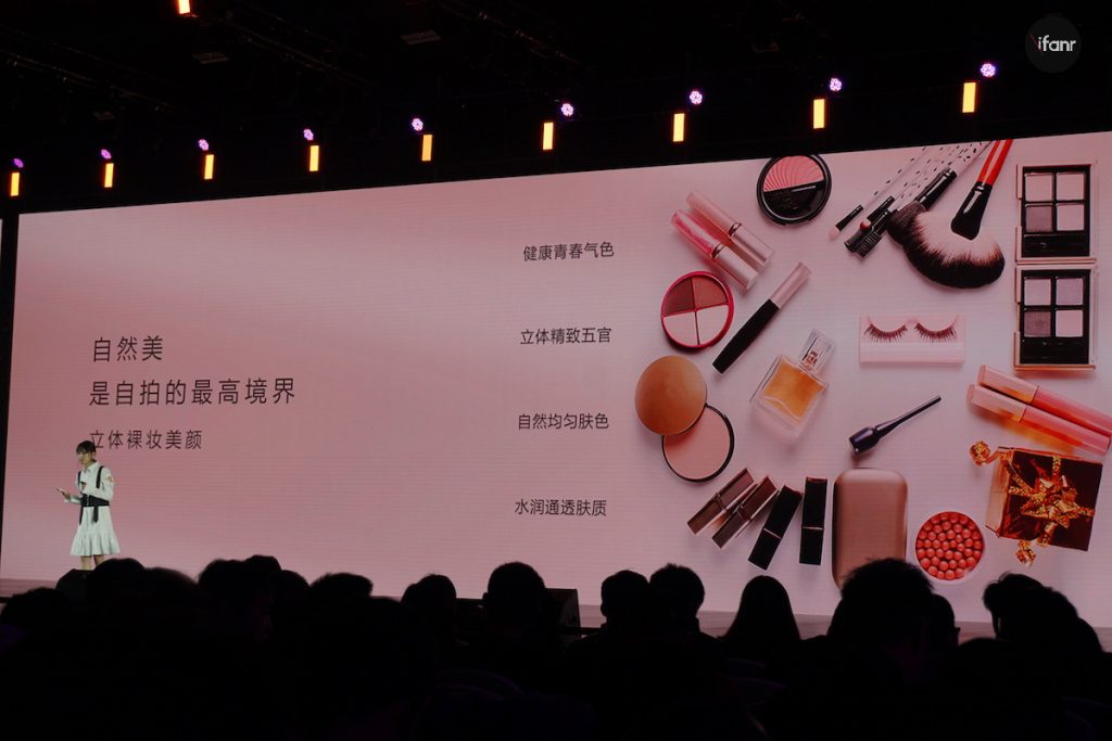 「立体裸妆美颜」是美颜功能中的其中一个特性,所强调的是带来“自然美”的美颜体验。此外在美颜功能部分中,相机系统新增了气垫 BB 霜、遮瑕笔、美瞳、多色眉笔、阴影粉、镜架识别(对戴眼镜的用户进行精准美颜)、性别识别等美颜美妆算法。