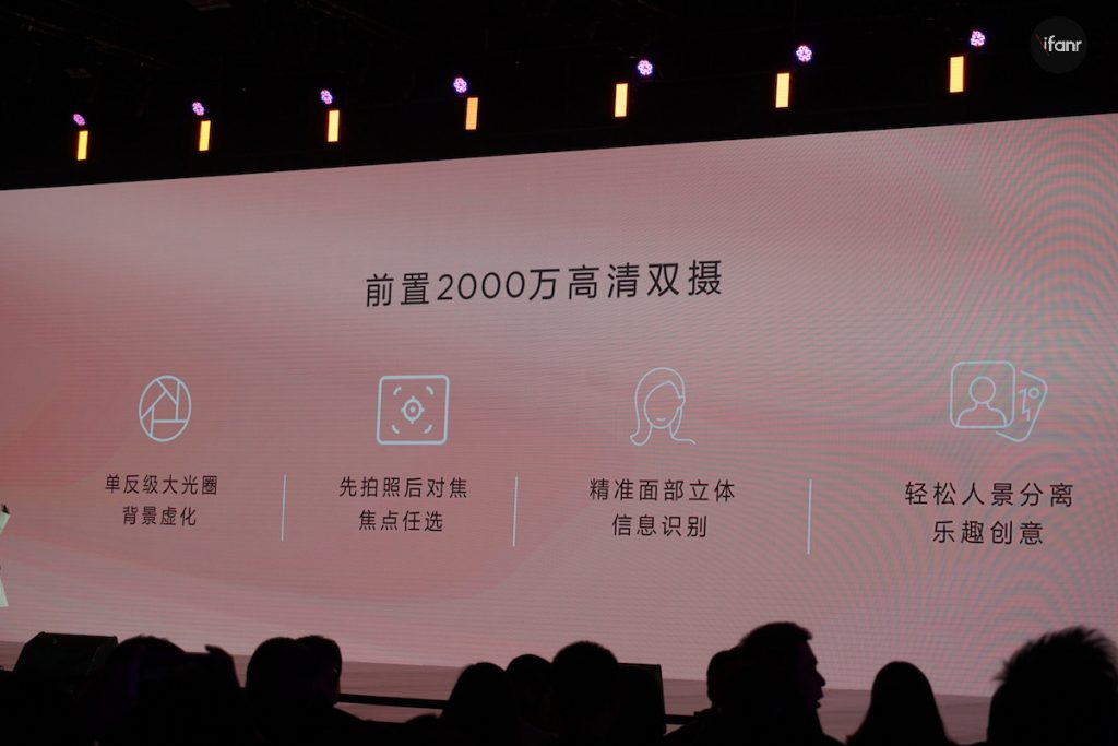 前置 2000 万像素主摄像头+200 万像素副摄像头(景深镜头)