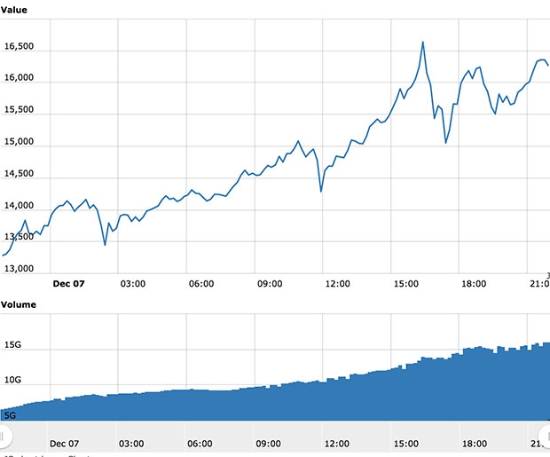比特币价格在近几个交易日不断高涨,接连超过 13000 美元、14000 美元,本周四上午涨幅创下新高,其交易价格一度逼近 18000 美元。而在两周前,比特币的交易价还不到 8000 美元。