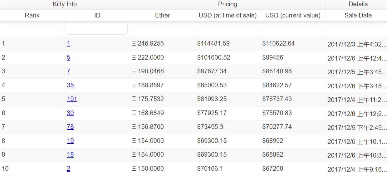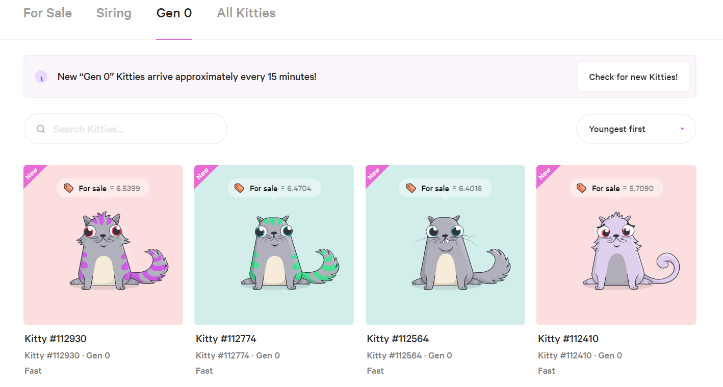 首先,这是一个有现金投资和收益的游戏。玩家可以付费买猫、付费生小猫(少量费用)、借用别人的猫生小猫(略多一点);然后可以出售自己猫用于配种生小猫,也可以出售直接获得上不封顶的利润。猫的出售是以拍卖的形式在网站上完成的。交易的币种是以太币,在国外的交易所是可以兑换成现金体现的。因此,在用户能持续消费(生小猫)和交易(购买猫)的前提下,区块链猫变成了一种能产生现金流回报的资产。
