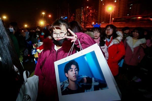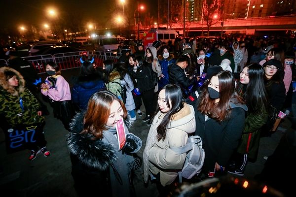 下午4点左右,大批粉丝已经在口碑双12派对现场外围。他们拿着为偶像打call的横幅和海报,完全忘记了北京今天零下4度的寒冷。