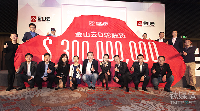 钛媒体快讯 | 12月12日消息:今日,雷军旗下金山云宣布D轮完成3亿美元融资,金额为云行业单轮融资最高。至此金山云投后估值达到19亿美元,成为国内估值最高的独立云服务商。