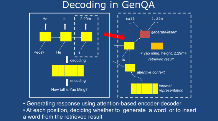 第一个是 GenQA。这个工作是这样的,假设你有个知识图谱,这里面含有大量的问答句。我们希望模型能自动学习神经网络,去做问答,生成答案。