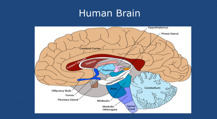 他太太把他的病总结的非常清楚,能够做简单的思考,但没有记忆。从这个案例中,可以看到记忆对人来说是非常重要的。这里面涉及到一个重要的器官,即大脑中的海马体。这里有一张图,是人体大脑的结构。