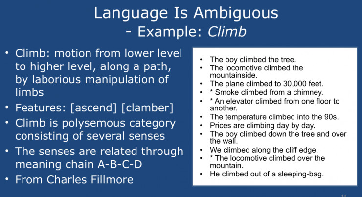 进一步来分析这三个挑战,下图中是用 claim 的几个例子,可以扩展为不同的意思。即具有多义性。