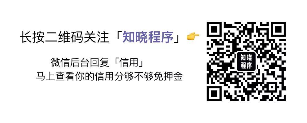关注「知晓程序」公众号,在微信后台回复「信用」,马上查看你的信用分数够不够免押金。