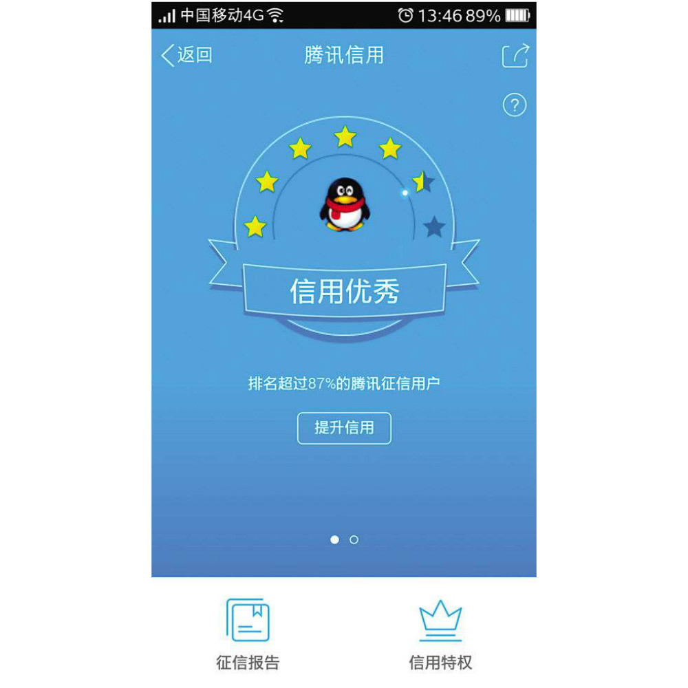 而到了 2015 年 11 月,腾讯信用面对 QQ 用户首次开放限量公测,但仍然只能查看信用星级和排名。信用星级的评估标准当时也还只是基于用户「守约、安全、财富、消费」这 4 大指标。