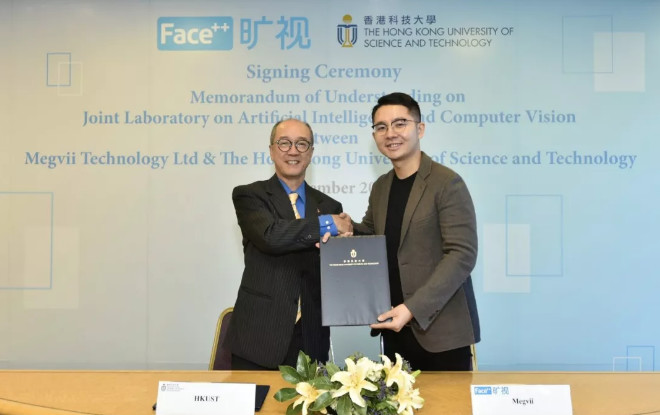 旷视科技 Face++创始人兼 CEO 印奇与香港科技大学校长陈繁昌教授作为双方代表签署合作备忘录