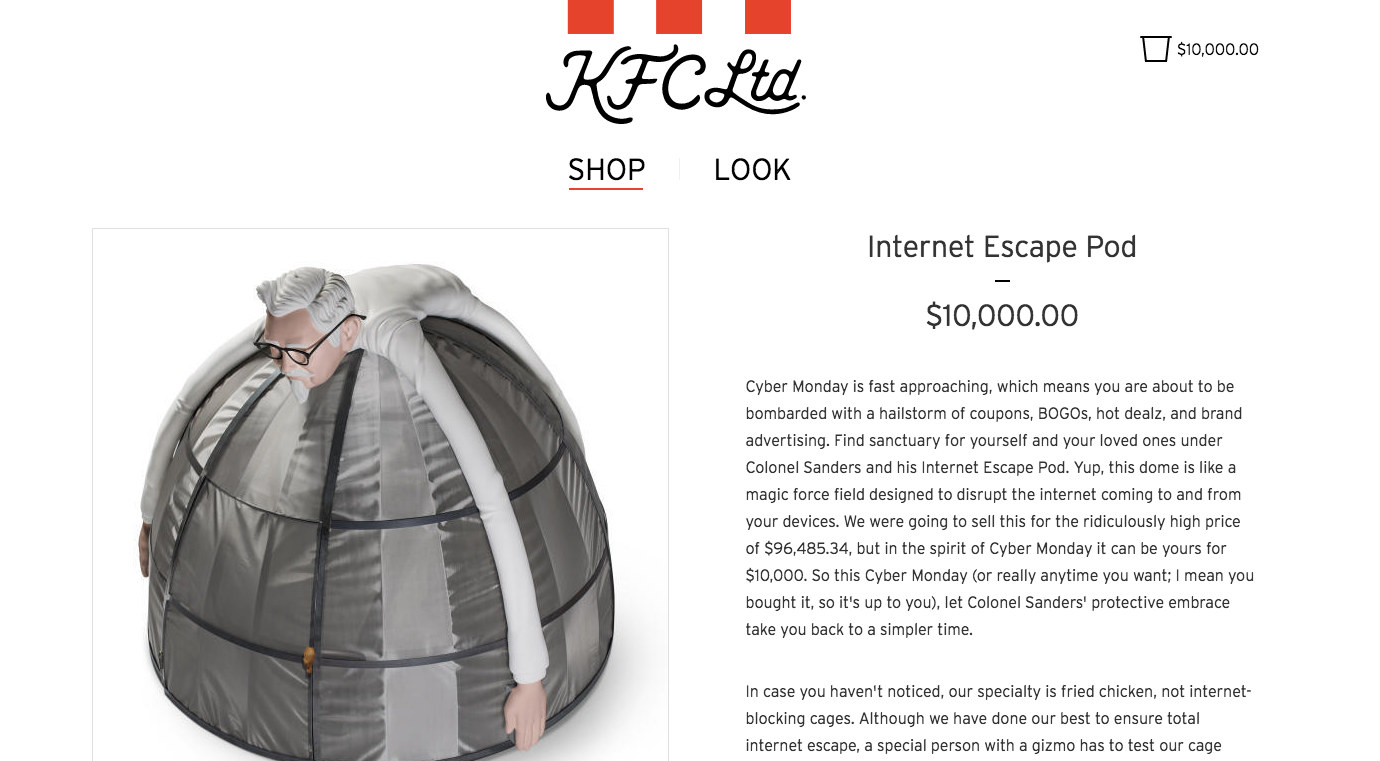 然而这些都只是肯德基奇葩周边的冰山一角,肯德基甚至还专门开了一家周边产品的网店来出售这些产品,衣服、袜子、项链一应俱全,还有让你「回归原始社会」的帐篷,真正做到「一鸡多吃」。