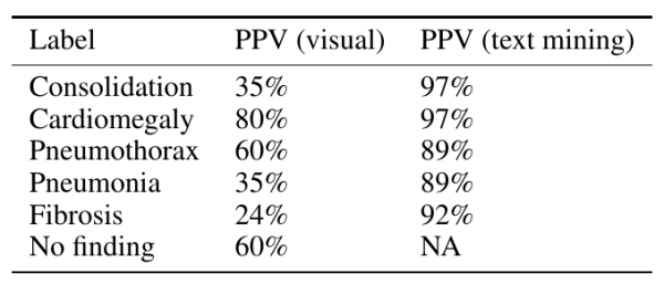 与人类视觉评估相比,ChestXray14 数据集中的标签不准确、不清楚,并且经常描述医学上的次要发现。