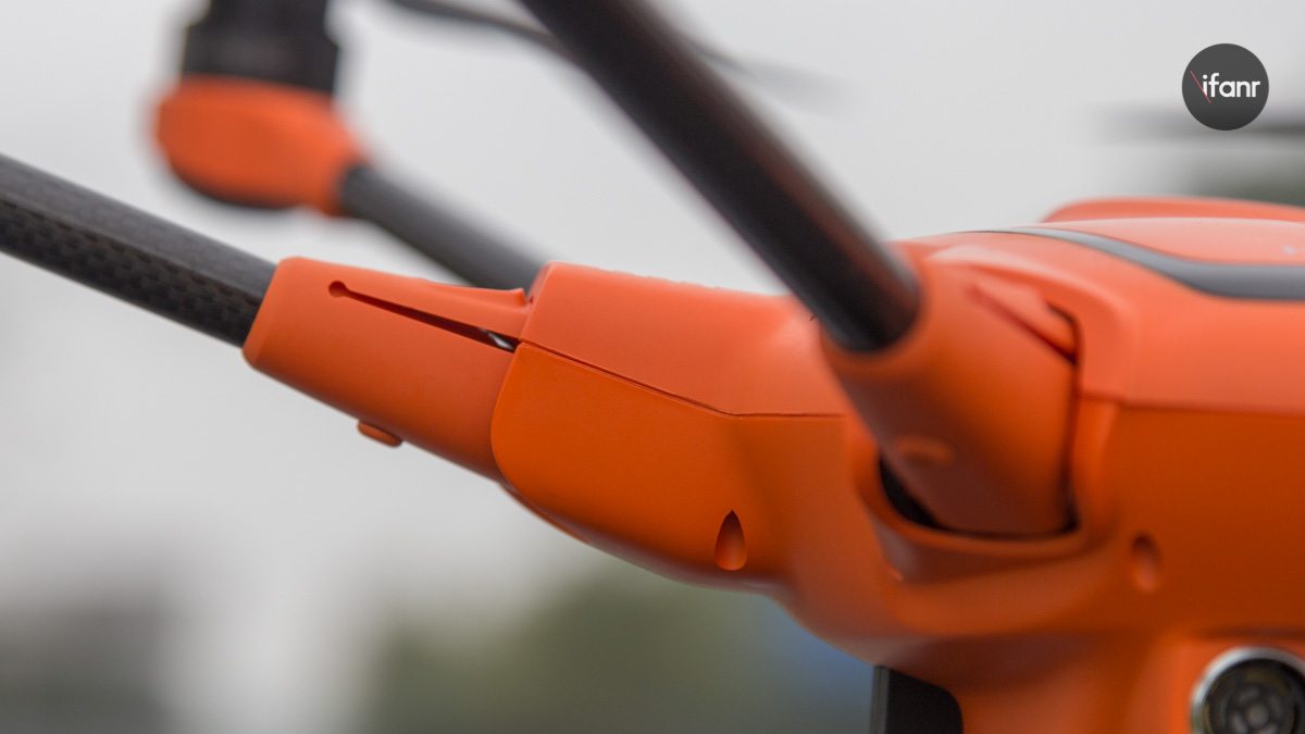 一年后,Typhoon H 的亮相可以说是让人眼前一亮,定位于消费级航拍无人机,却集成了可折叠六轴、升降脚架、超声波乃至视觉避障等专业特性,碳纤维机臂、 脚架和塑料机身的搭配在确保轻量化的同时也提供了必要的强度。