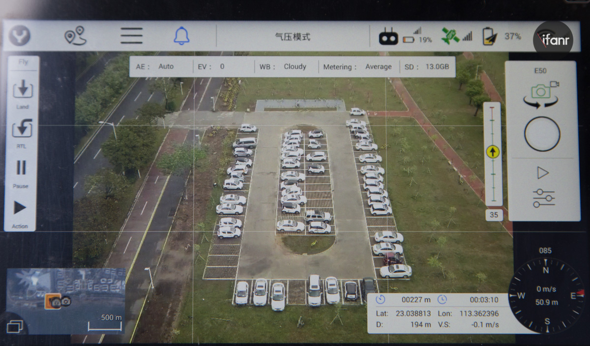 尽管 Datapilot 也提供了和传统航拍无人机一样的图传界面,这个界面更像是一个监视器,即使以画中画的形式屈居 GPS 地图的一角,也足以让我们知晓飞机的取景是否正常。