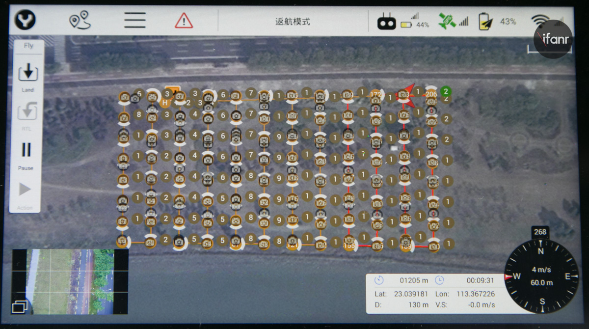 自动飞行中,由于飞机完全摆脱了人为操控的不确定性,飞控对整个飞行路径谙熟于心,所以飞行姿态也比手动飞行更加果断稳定,转向、加速一气呵成。高精度的返航点定位确保了飞机可以在返航时精确地降落到起飞点,飞手只要时刻留意飞机动向就好了。不过考虑到 GPS 定位有时候会出现偏移,所以最好还是挑选一个开阔地作为起飞点,并把返航点的高度设定高于周边最近的建筑物,降低自动返航的安全风险。
