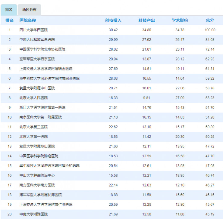 近日,“2017年度中国医院科技影响力排行榜”正式公布,四川大学华西医院、中国人民解放军总医院、中国医学科学院北京协和医院名列综合排名前三甲。