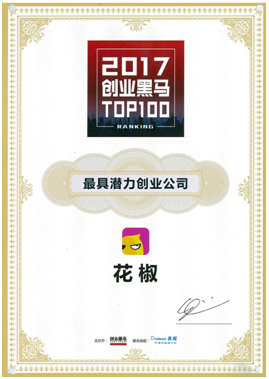 原标题:花椒荣获“最具潜力创业公司”奖项 成榜单中唯一直播平台 近日,“2017创业黑马TOP100