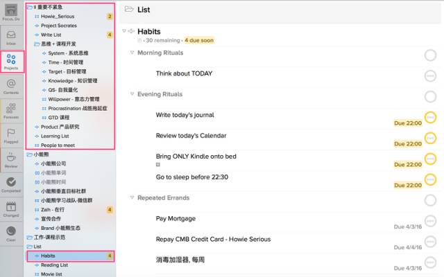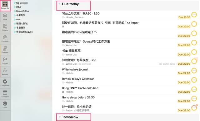 他还用少而精的时间管理App,比如OmniFocus,进一步提升时间利用效率,管理工作生活学习的方方面面。