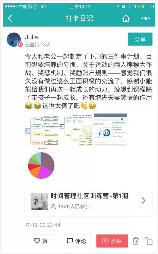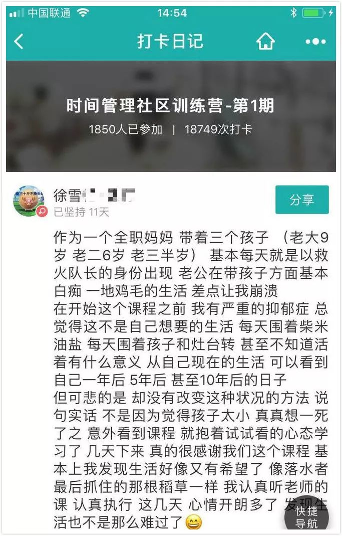 陈华伟此前与分答合作的《时间管理训练营》第1期,几乎不做推广,通过口碑自传播就吸引了超3000名学员,备受好评,很多学员已经把这一套时间管理系统用到了自己的生活中。