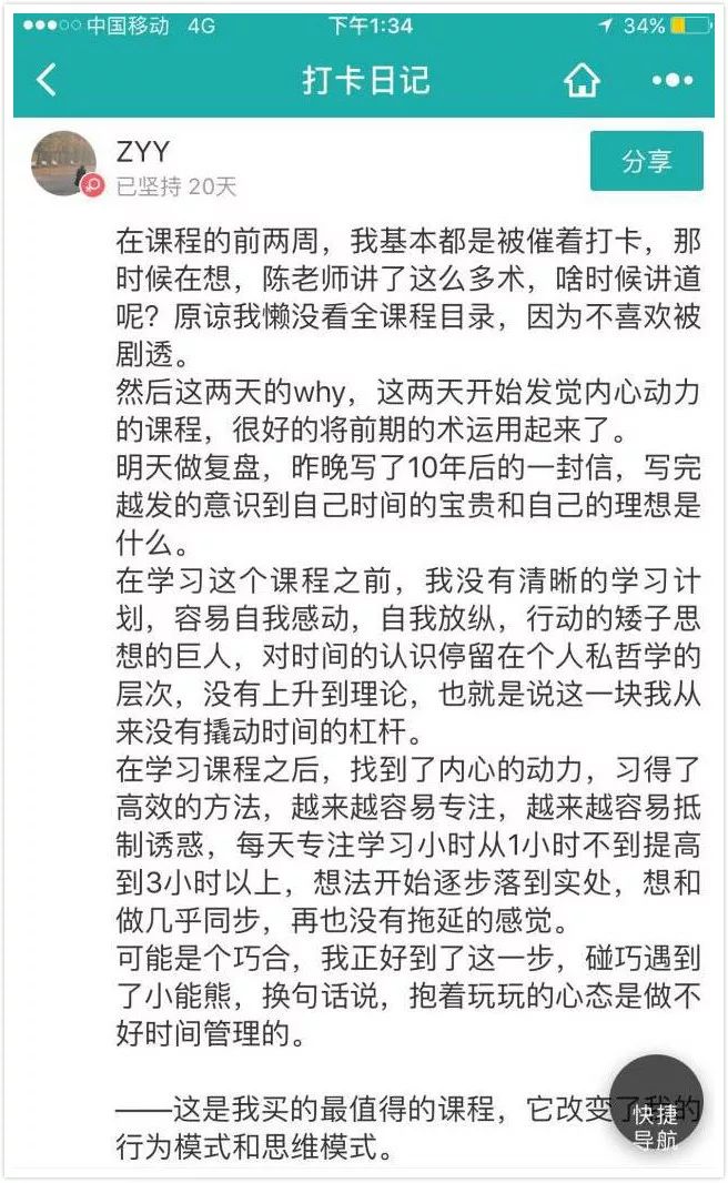 陈华伟总结的这一套时间管理系统,不仅接受过四大、创业极端忙碌工作的考验,还通过「在行」、「分答」平台也接受了超过3000名学员的实践检验,学员们好评如潮。