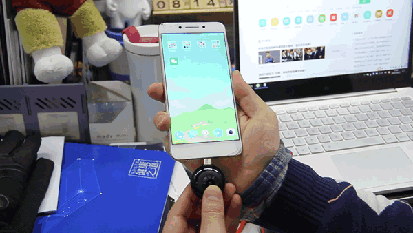 其次,要使用也很简单,安装MADV Mini全景相机的APP之后,只需要将相机通过Type-c接口与手机连接,马上就会弹出拍摄界面,即插即用。从掏出相机,安装到拍摄,整个过程不到15秒。