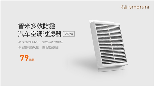 1. 小米生态链智米科技推防霾车载空调滤芯:两只装 79 元