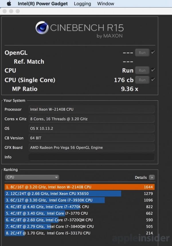 苹果最新款iMac Pro采用了更为先进的双峰山冷却解决方案,空气流量增加近75%,系统热容量增加80%。对此外媒AppleInsider进行测试,查看CPU和GPU能够达到苹果官方所说的标准。