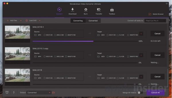 最后是将4K HEVC视频转换成为Apple ProRES。在任务启动30秒时候,CPU温度达到了75摄氏度,时钟频率稳定在最大3.9GHz。接下来的30秒时间内将CPU温度拉到85摄氏度。在三分钟之后,时钟频率开始有所下降,在温度超过93摄氏度的时候Mac会降频至3.63GHz,然后又回复到3.9GHz。