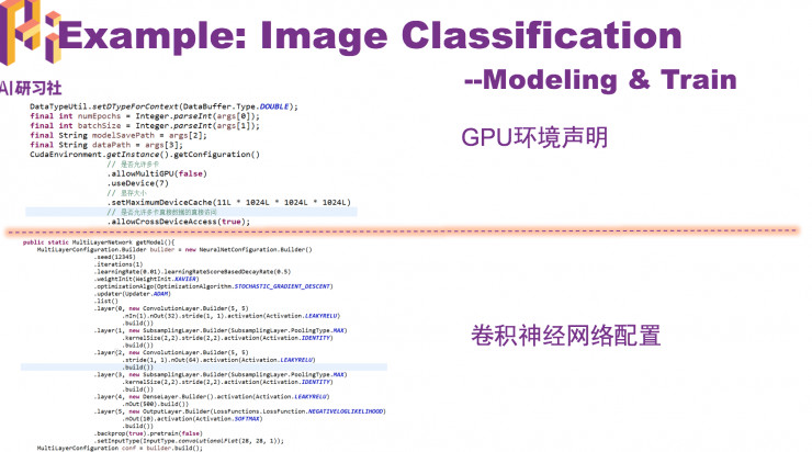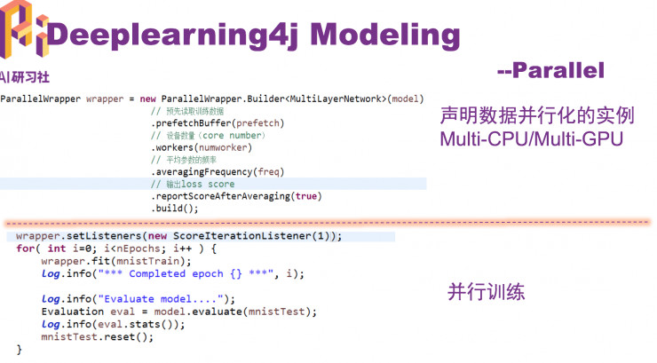 第三个部分怎么建模。分三个场景,第一个是本地单机建模;第二个是有多个CPU或多个GPU卡情况下怎么做并行建模;第三个是怎么和Spark结合做分布式的DL4j模型的建模。