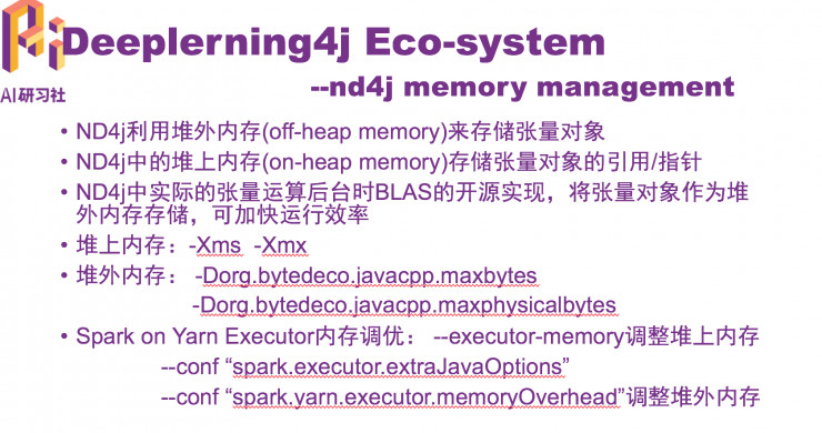 需要注意的是,用ND4j做神经网络的训练时,堆外内存一定要调的非常大,因为大量的工作都是在堆外内存做相应的张量运算。堆外内存要远远大于堆上内存。