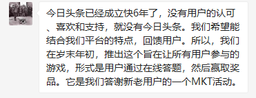 嗯……就是这么简单。这么一个“仓促上线”,两场改三场,三场变四场,奖金额度和王思聪互飙的项目,是头条的年终回馈……市场活动?