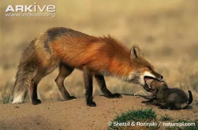 除了我们可以捕食谁和如何捕食谁,谁会捕食我们以及如何保持警惕、如何逃跑,也是妈妈要教会孩子的重要内容。下图的赤狐被金雕捕食,我们也完全有可能成为一些更大的猛兽的食物。