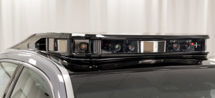 较短距离激光雷达传感器在车辆的四个侧面都处于较低位置,每个前四分之一面板各一个,前后保险杠各一个。这些可以检测汽车附近的低级别和小型物体,如儿童和道路上的垃圾。同时,该平台还考虑了对以后技术的兼容性。