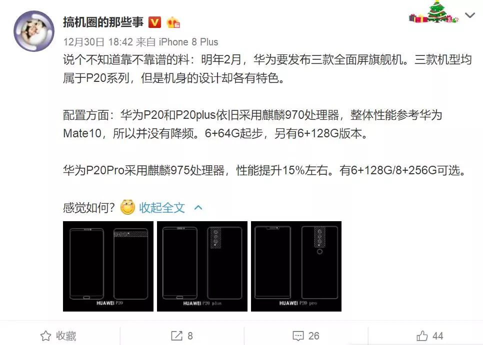 华为 P20 或会在 MWC 2018 大会前夕和我们见面,同时还会有三个版本,分别是华为 P20、华为 P20 Plus 和华为 P20 Pro,这三款手机的特色各有不同,且看下文仔细分析。