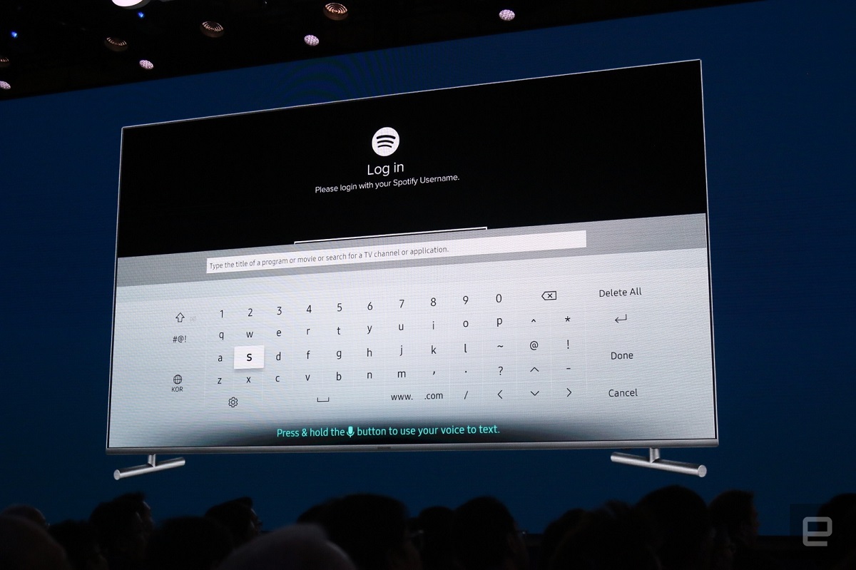 图自:Engadget 首先,依然是智能电视。这一次,三星把 2018 年的智能电视称为「Intelligent TVs」,因为三星将其人工智能助理 Bixby 塞进了电视产品中。 不同于以往的是,三星没有在发布会上提及任何关于电视硬件配置方面的升级,而是向人们展示如何通过电视来控制其它 IoT 设备。 在演示中,用户可以通过 Bixby 调出冰箱内部的实时画面,也可以在电视上直接看到门外的来客,而这一切可以通过 Bixby 完成,也可以通过手机完成。
