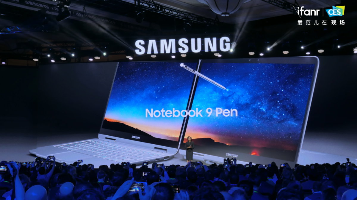 而其另一个特点就是模块化设计,用户可以根据需求来定制 The Wall 的大小,而三星还为 The Wall 加入了人工智能,通过人工智能可以让几乎所有画面都专制成 8K 内容。 The Wall 的概念比去年的 Lifestyle TV 更进一步,摘掉相框的 Lifestyle TV 可以更好的成为墙面的一部分,也能更自然的融入人们的生活。 Notebook 9 Pen 除了智能家居,三星还推出了一款笔记本产品,Notebook 9 Pen。