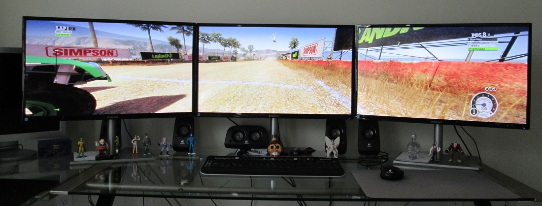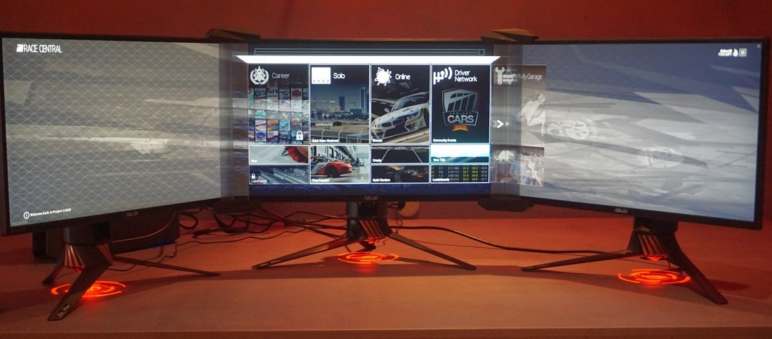如果还觉得不够用,那就只能将多台显示器拼接在一起显示了,获得的效果要比单一的宽屏和曲面显示器还要好,但多台显示器拼在一起会有一个令体验少打折扣的问题,就是拼接后的边框会将画面割裂。