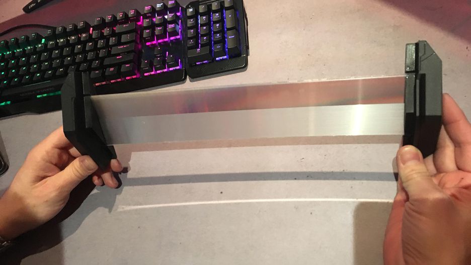 不过,在正在进行的 CES 2018 上,华硕给出了一个更加简单的解决方案。针对多台显示器拼接后大黑边框的问题,华硕展示了一个叫做「ROG Bezel-free Kit」的显示器「无缝对接」套件。