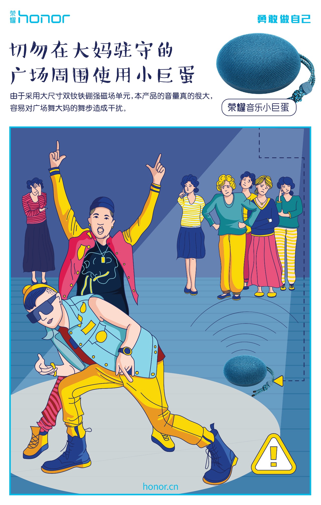 荣耀音乐小巨蛋采用了定制的扬声器喇叭,内含大尺寸双钕铁硼强磁场单元,是一般磁铁磁通量的五倍,最大音量达到 83 至 86 分贝,让手掌大小的荣耀音乐小巨蛋也能发出洪亮的声音。换言之,这样一个小东西,却有成为顶尖广场舞神器的潜质。