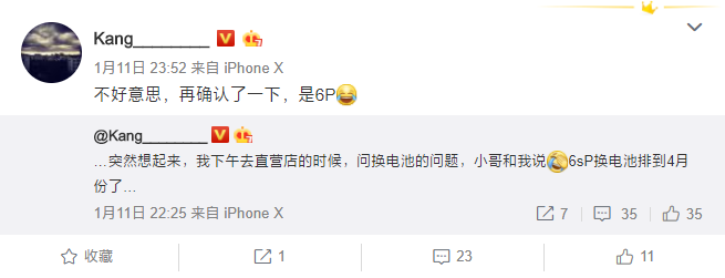 下午到直营店问了关于电池的问题,工作人员表示 iPhone 6 Plus 更换电池被排到 4 月份了。 由此看来,iPhone 6 Plus 的用户们还真的需要等待一段时间才能到 Apple Store 更换电池了。建议需要更换电池的用户可以先提前与客服进行预约,待电池恢复正常供应后再到店进行更换,这样能节省不少时间。
