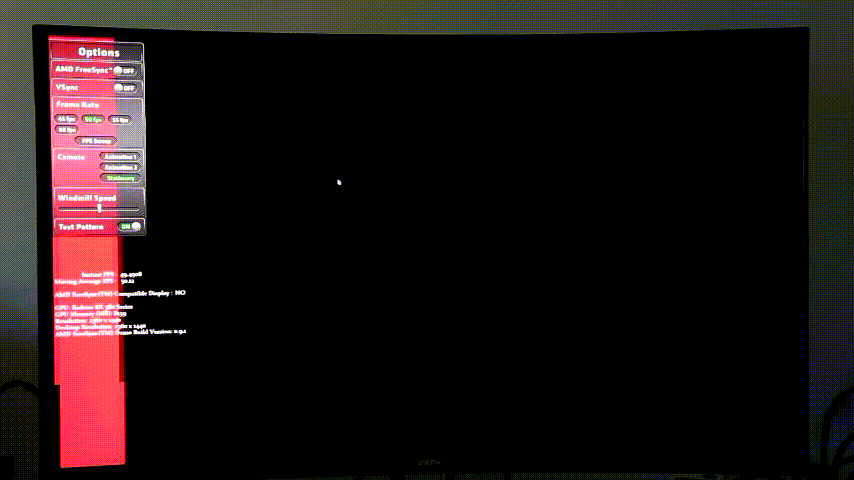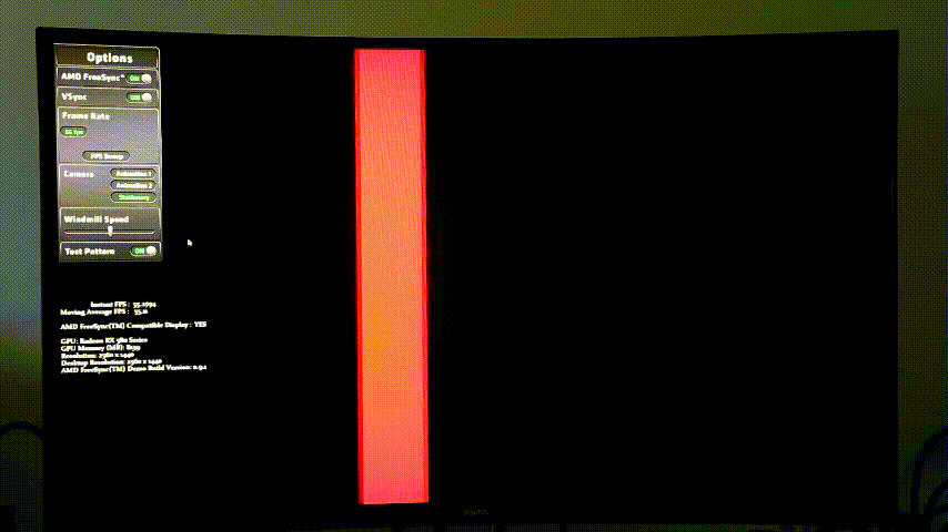 在开启FreeSync后可以看到能明显的降低撕裂和拖影。