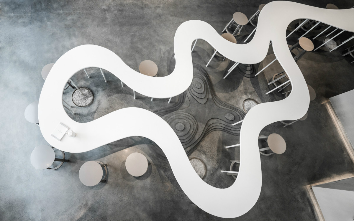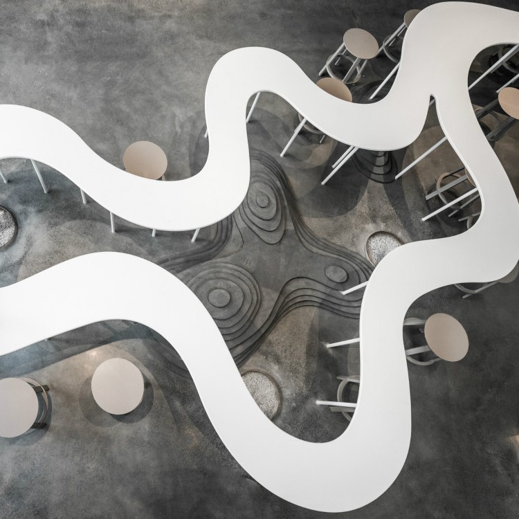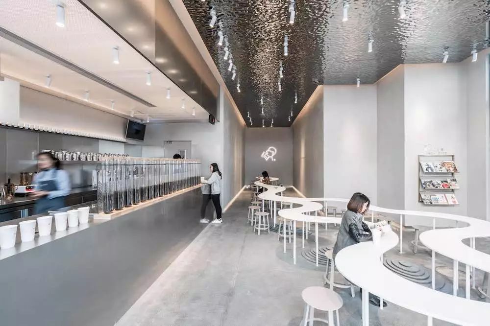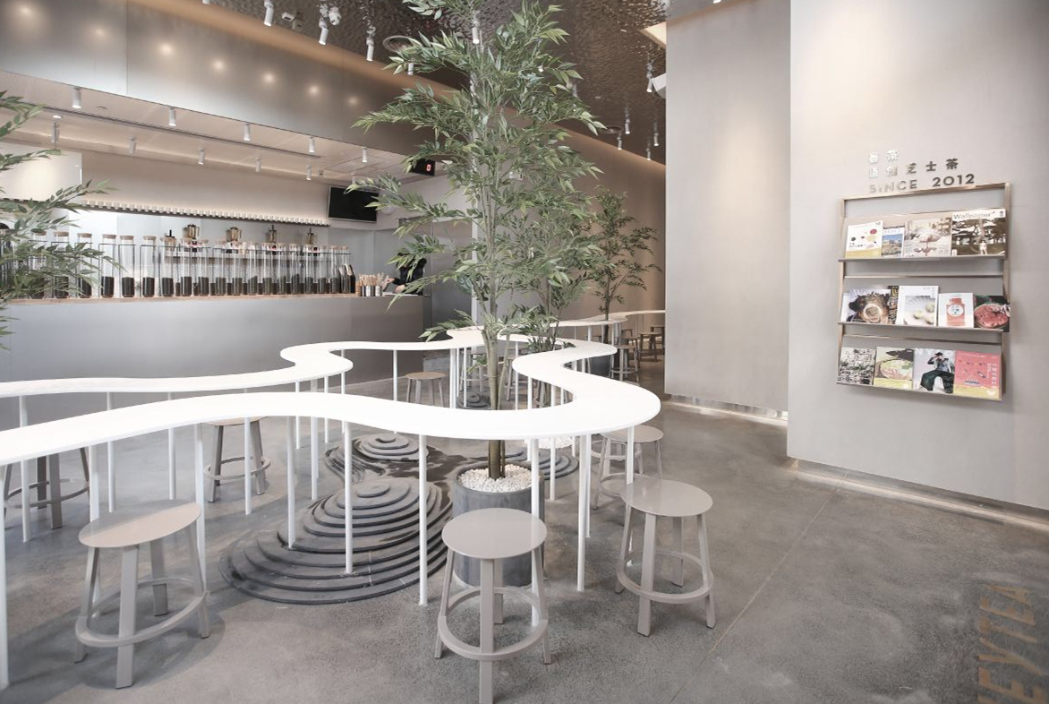 喜茶做了一张溪流般的桌子,让你在喝茶之余还能交新个朋友