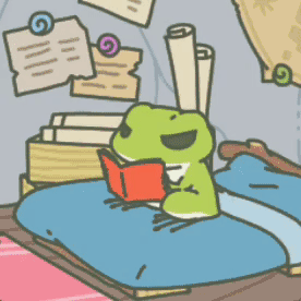我的蛙就超级喜欢坐在它二楼的小床上看书,就算困得不行、眼睛都要眯起来了,还是要继续看。