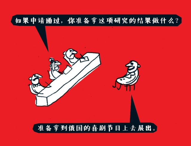 不过他说他还是感到自豪:多亏这项研究,他终于也跻身“英国科学家”之列了。“除了犯懵,还有好奇,”他说,“我也对讽刺在俄国人生活中扮演的角色产生了兴趣。”