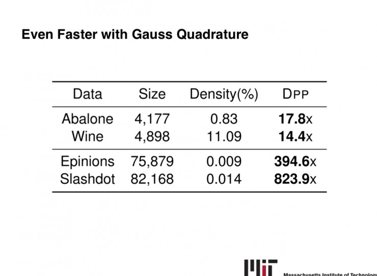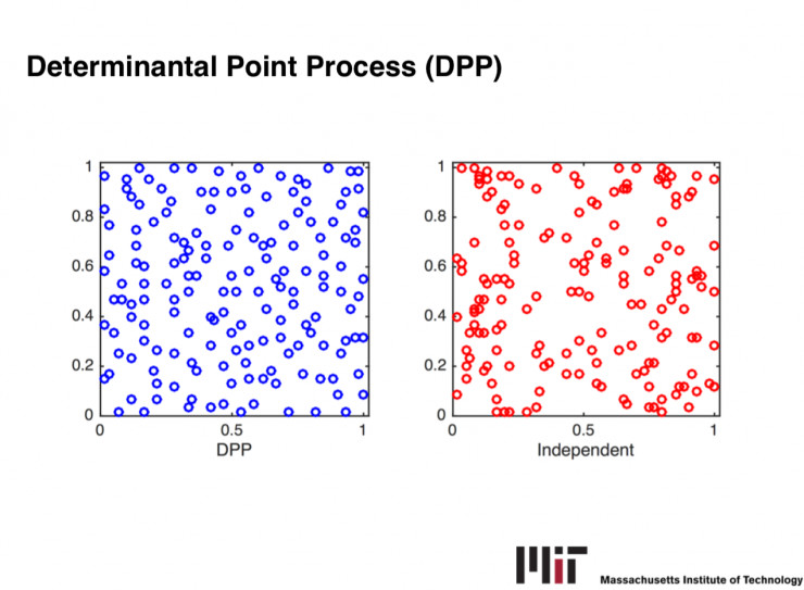 通过多样性采样,我们可以极大地减少处理数据的时间,在很短的时间内获得较多的信息。我之前做过一些多样性采样的理论工作,主要是关于如何提升多样性采样的效率的。比如我们研究的一个比较典型的多样性采样的概率分布,Determinantal Point Process。它的采样过程非常耗时,我和导师研究后通过使用马尔科夫链进行采样,在理论上证明了它的采样效率要高于原本的方法,并且运用数值计算的技术(Gauss Quadrature),极大地提升了采样效率。