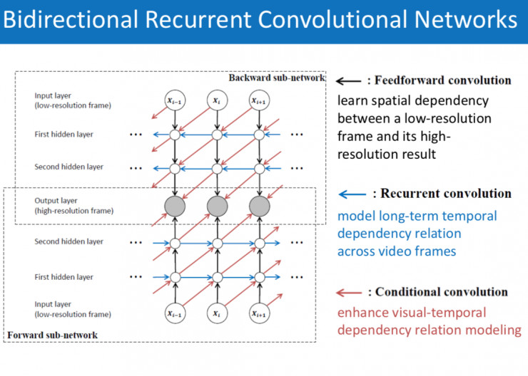 应用循环卷积网络到视频超分辨率上,可以在保持视觉内容空间结构信息的同时极大提升模型的测试速度,并且卷积操作使得我们可以处理任意尺度的视频帧。