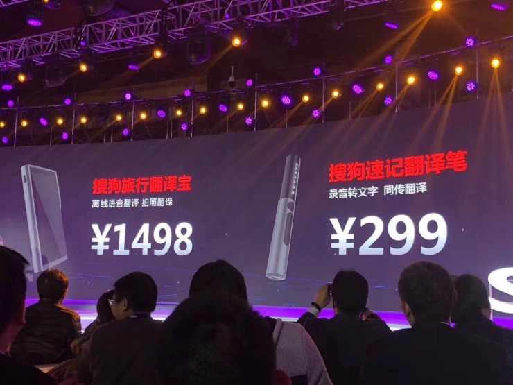 雷锋网了解到,对于翻译,搜狗本来就已经有所积累,比如说英文搜索、明医国际搜索、日语韩语搜索、输入法直接翻译等。但在本次大会上,搜狗直接推出了两款与翻译相关的硬件,分别为【搜狗旅行翻译宝】和【搜狗速记翻译笔】,售价分别为 1498 元和 299 元。