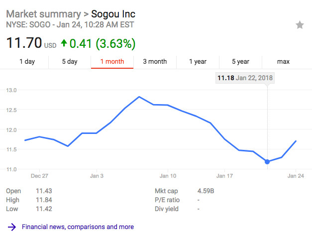自从 2017 年 11 月 9 日正式上市以来,搜狗的股价从 13 美元最低跌倒了 11.18 美元,跌幅高达 14%,市值也蒸发了不少;可以想见的是,面对这种情况,王小川和搜狐团队面临了不少来自董事会、大小股东和公司内部的压力。就在 2018 年 1 月 19 日,搜狗宣布任命周毅为新任 CFO,这也被外界解读为是一个自救之举;结果第二天,王小川在公开场合称【上市后我挺累的】。