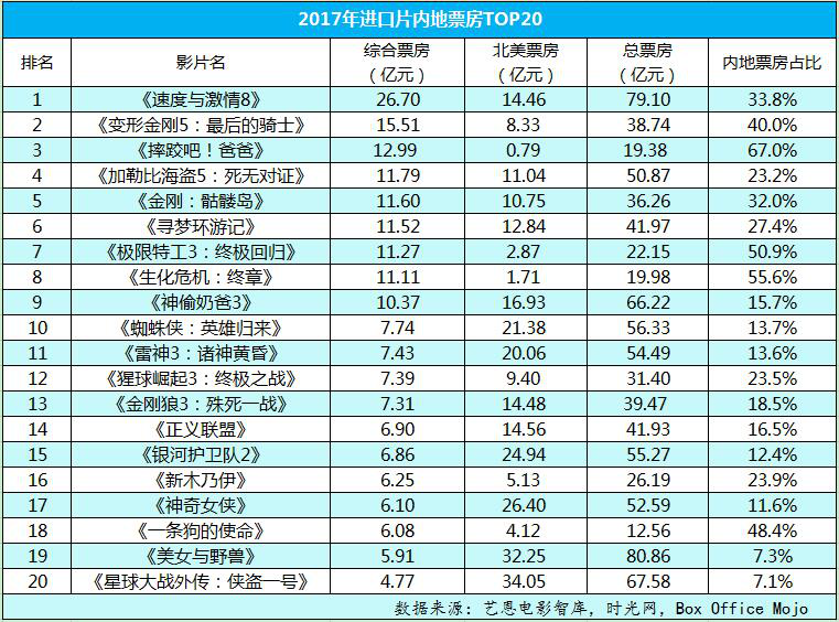 复盘2017年进口片在内地市场的票房表现,文创资讯总结出了四大现象——