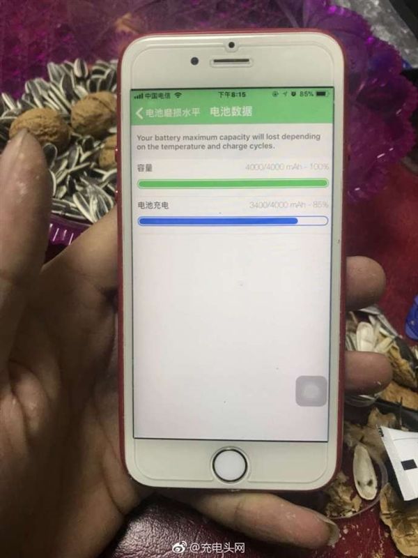 原来,这个网友通过暴力改造,将iPhone 6S内置电池升级为4000mAh,而成功更换电池后,看了一夜的电视剧,12个小时还有20%电量。