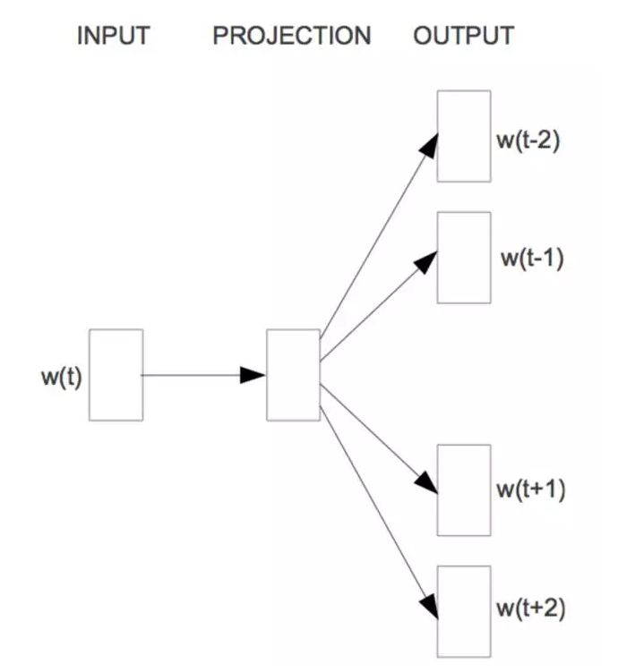 CBOW 可以看作一个具有先知的语言模型,而 skip-gram 模型则完全改变将语言模型的目标:它不像 CBOW 一样从周围的词预测中间的词;恰恰相反,它用中心语去预测周围的词: